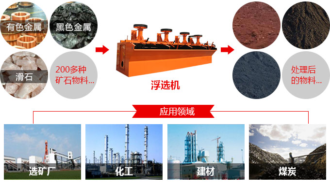 应用范围:主要用于选别铜、锌、铅、镍、金等有色金属,也可以用于黑色金属和非金属的粗选和精选。